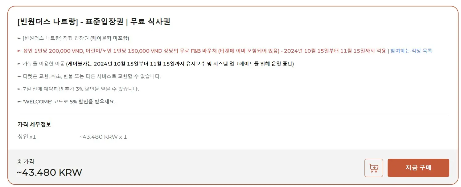 빈펄랜드 빈원더스 입장권 이용 요금 및 이용 방법