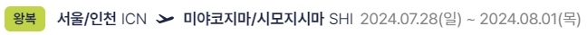 미야코지마로 가는 비행기 노선 중 8월 초 저렴한 금액대의 일정을 알아보았다.