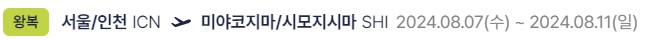 미야코지마로 가는 비행기 노선 중 8월 초 저렴한 금액대의 일정을 알아보았다.