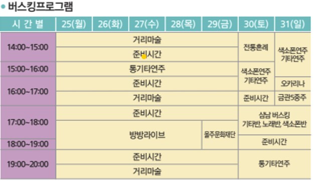 작천정 벚꽃놀이의 흥을 돋구어줄 버스킹 프로그램도 31일까지 계속되는데 색소폰 연주, 오카리나, 통기타 연주, 라이브 공연까지 시간대별로 준비되어 있어 저녁까지 알찬 시간을 보낼 수 있다.