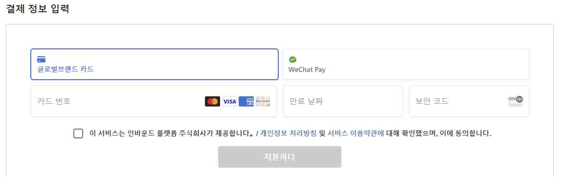 4. 다음으로 결제 정보를 입력합니다.