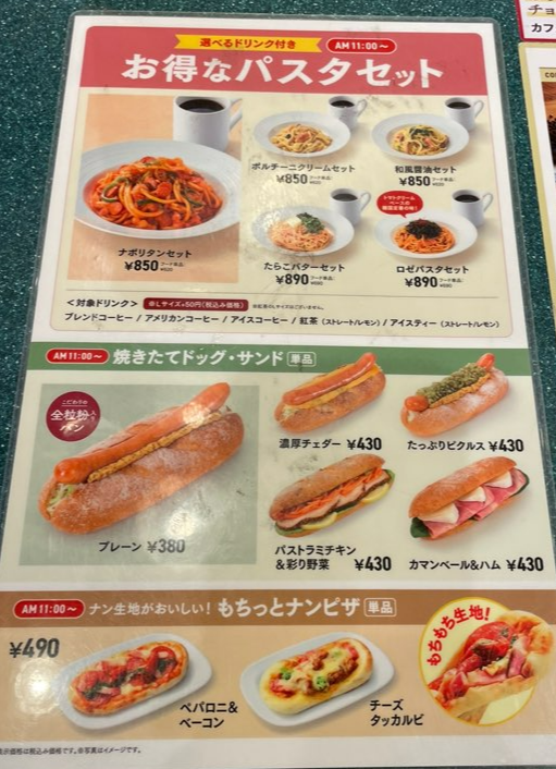 오전 11시 부터 주문 할 수 있는 파스타와 핫도그, 미니 피자 같은 메뉴들도 있었는데 가격도 괜찮은 편인 듯하다.