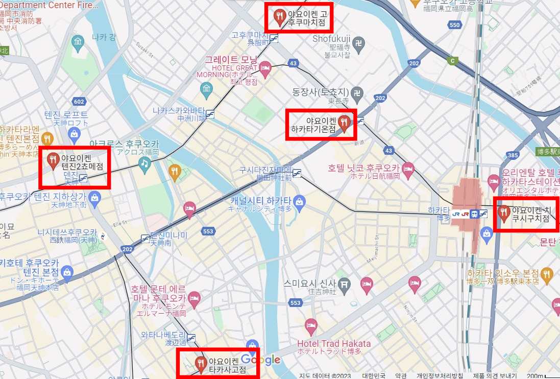 후쿠오카 야요이 켄 지점 5곳 위치 영업시간