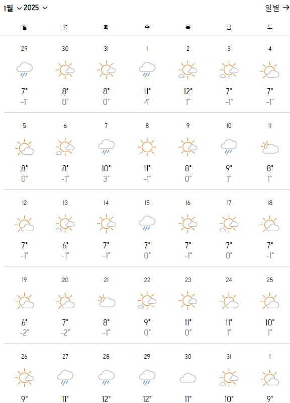 1월 나고야 날씨