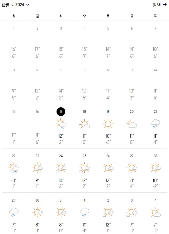 12월 나고야 날씨